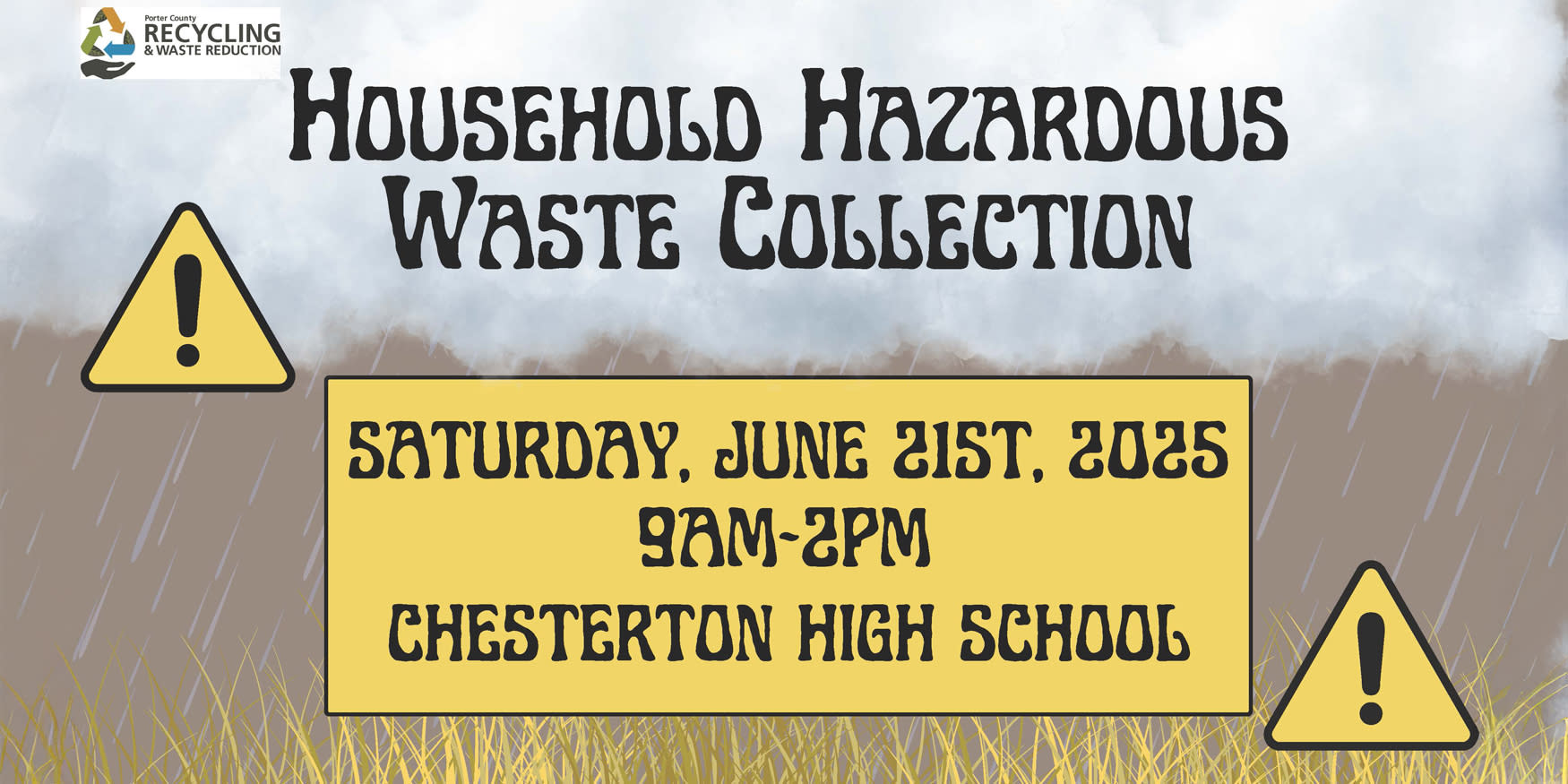 Howdy Porter County!! Let's protect our local environment by properly disposing of our Household Hazardous Waste at our next collection event on Saturday, June 21st, 2025 from 9am-2pm at Chesterton High School. Please enter at 11th Street. Proper disposal of hazardous waste is crucial to protecting public health and preserving the environment. Hazardous waste often includes materials that are flammable, corrosive, reactive, or toxic. Examples include cleaning supplies, oils, chemicals, and fertilizers, which can pose significant risks if not handled correctly. It's important not to dispose of these items in regular trash bins or down drains, as they can contaminate water sources and harm wildlife. Porter County Residents are welcome to come to our FREE collection events to dispose of your hazardous waste. Check out portercountyrecycling.org to find the full list of accepted items.