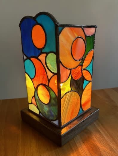 “I was smitten early,” says Carol Lawrenz, an artist from the advanced classes, who initially enrolled in stained glass because her daughter thought it would be fun to do together. She goes on to say, “Stained glass opens so many avenues of creativity. I have more ideas than time to do them.”